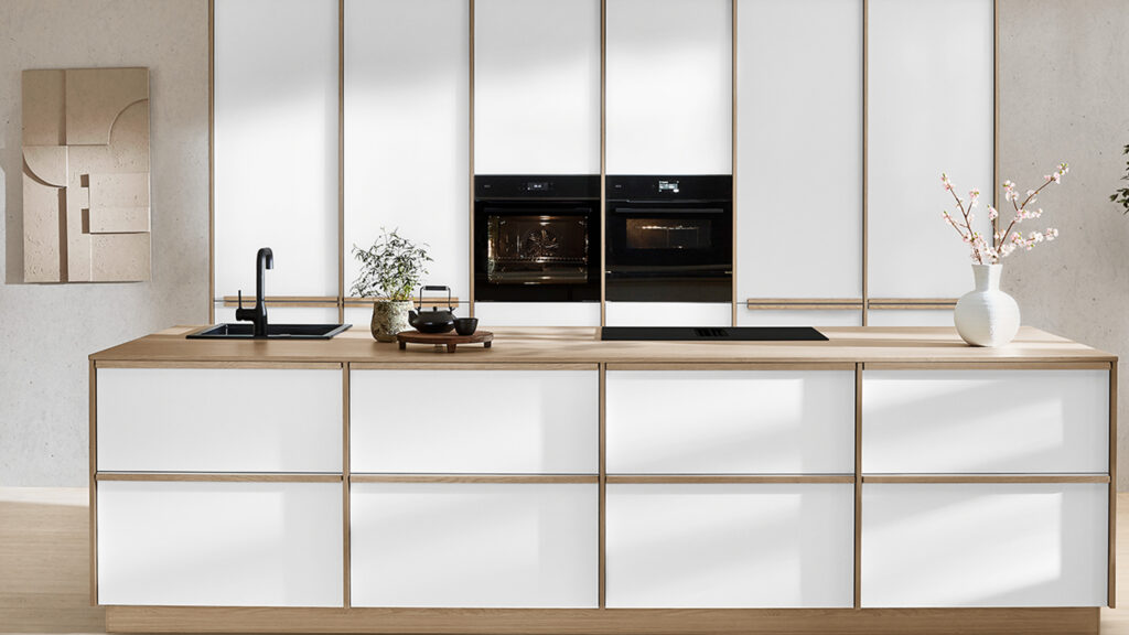 2026 steht bei Nobilia die Designlinie Sakura im Fokus. Eine moderne Japandi Küche, die japanischen Minimalismus mit skandinavischer Gemütlichkeit vereint. Vorgezogene Wangen und filigrane Griffleisten aus hellem Holz sind hier die zentralen Designelemente, die diese Nobilia Küche zu etwas ganz besonderem machen und ist im Übrigen auch fürs Nobilia Bad erhältlich.