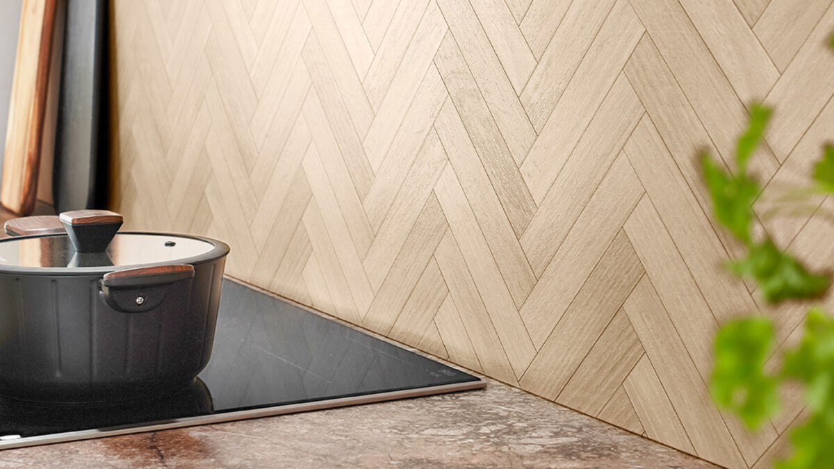 Bringen Sie mehr Tiefe und Struktur in die Küche: Mit einer schönen Rückwandverkleidung. Unser Highlight für 2026 ist das neue Fischgrät Dekor in Eiche Como Nachbildung.