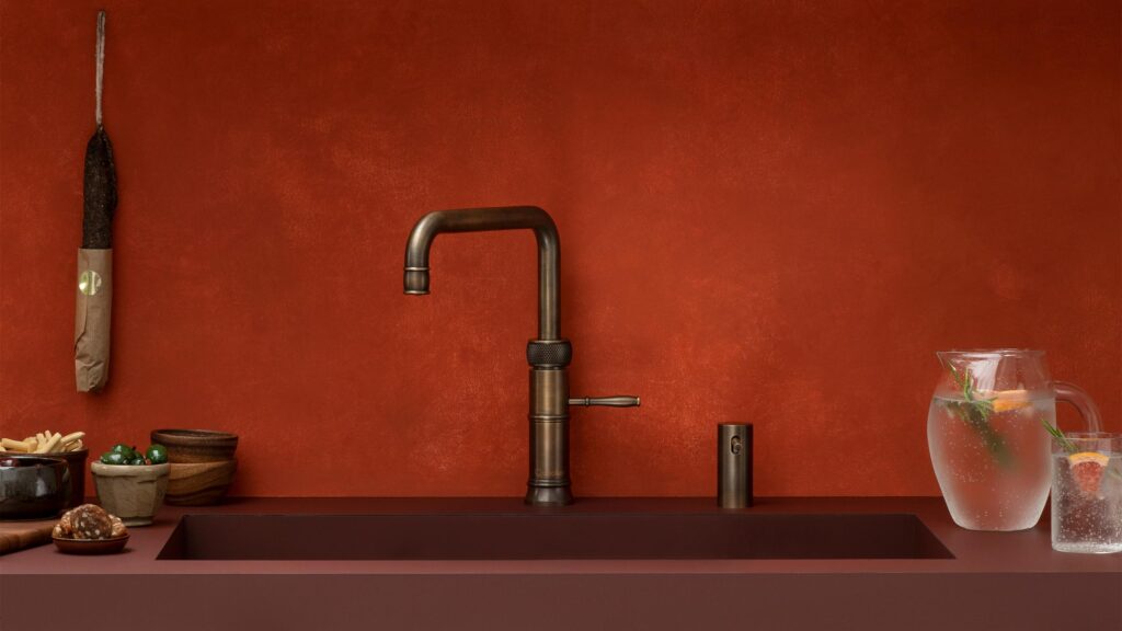 Quooker Fusion (hier in Gunmetal) ist eine elegante Küchenarmatur, die es in verschiedenen Farben gibt.