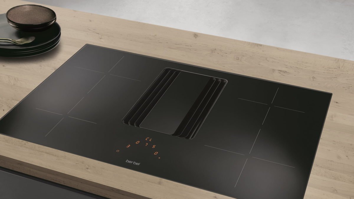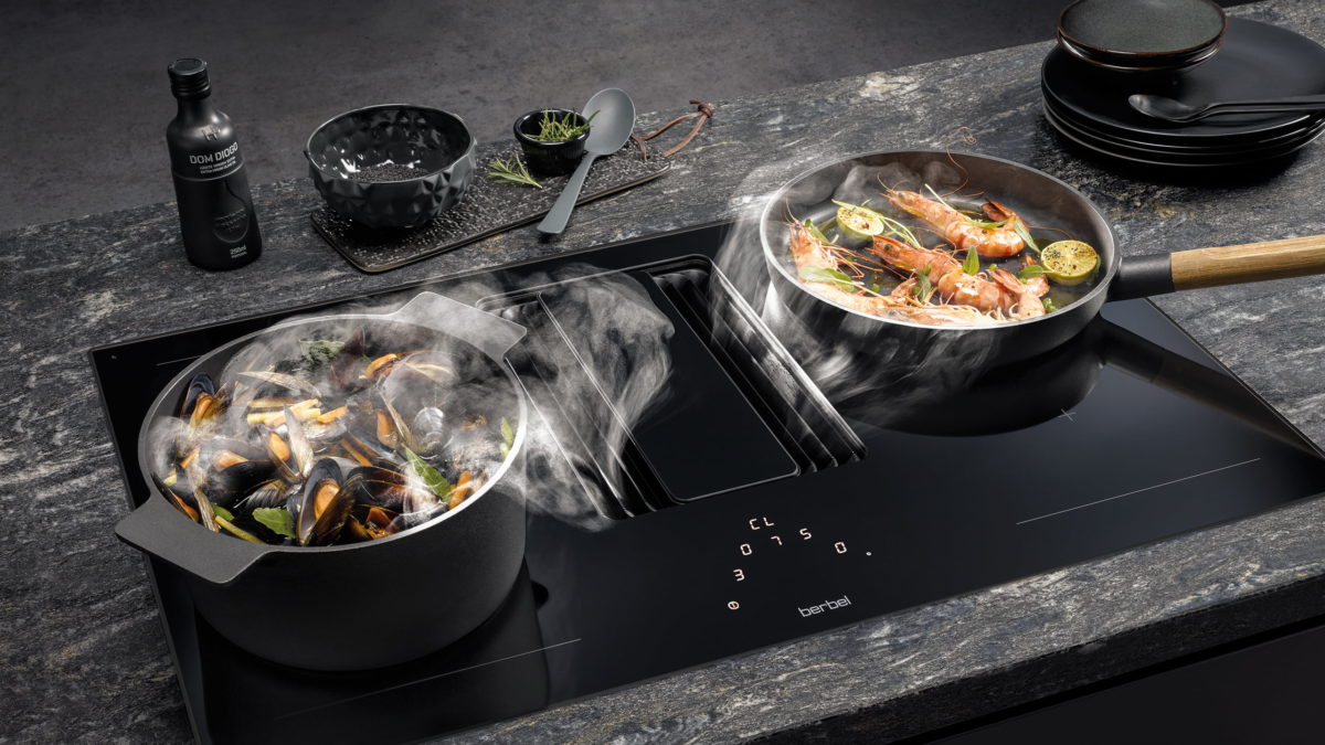 Berbel‑Hauben lassen sich flexibel an jede Bausituation anpassen. Mit EcoSwitch schalten Nutzer*innen per Tastendruck zwischen energiesparender Umluft (ideal im Winter) und klassischer Abluft um; ein Hybridfilter bindet dabei bis zu 97 % der Gerüche.