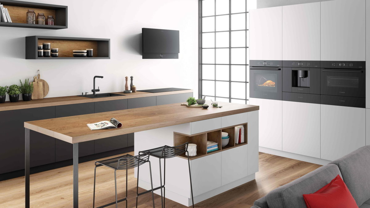 Moderne Küchen sind smart. Backofen, Kochfeld und Kühlschrank lassen sich mit dem WLAN verbinden und ganz bequem vom Sofa aus mit dem Smartphone steuern. Praktisch dabei ist auch, dass sich smarte Küchengeräte auch untereinander vernetzen können. Zum Beispiel die Dunstabzugshaube mit dem Kochfeld. So müssen Sie lediglich ein Gerät bedienen, den Rest erledigen die intelligenten Geräte. Noch dazu bietet das smarte Küchengerät nützliche Features, wie beispielsweise Kochassistenten, die Ihnen beim Braten, Backen und Kochen mit cleveren Tipps zur Seite stehen.